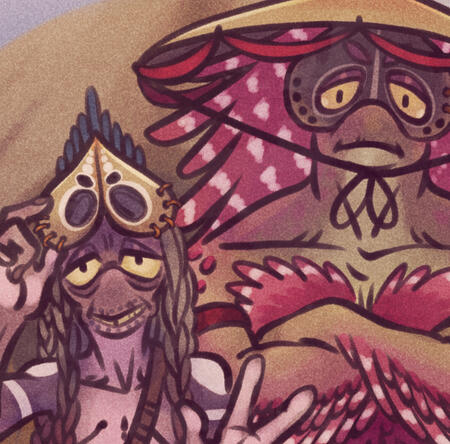 The nomadic Mudellan meetle rangers were loosely organized, queenless groups that followed independent spiritual guides, who in turn followed the wisdom of their herd. As the rangers had no settled queens, Mudokons were not born into the role, but may choose or be chosen by spiritual guidance to join them. Ranger bands served as travelling augurs and mystics, separate from an individual village’s medicinemud while commanding the same level of respect. As rangers travelled throughout the Mudella territories, they were often called on to deliver messages, provide emergency aid, and serve as neutral mediators when solving disputes.