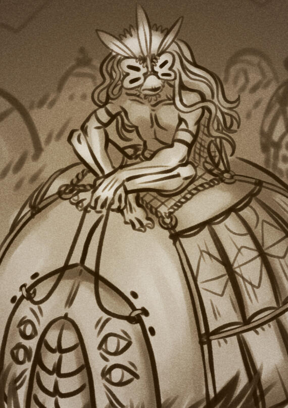 The Mudella were once purely nomadic, though as they prospered as a tribe, more queens were hatched as a result. Those queens would go on to settle with their harems, and in time develop small communities into independent cities. Traditionally, only one or two queens would be actively settled in a city, though in their golden age they would have a small network of unsettled daughters and sisters that handled their queen’s affairs. Similar to other tribal cultures in the south, inactive queens not being groomed as princesses were allowed to take shamanic vows, allowing them to leave the community and join the rangers on their migratory paths.