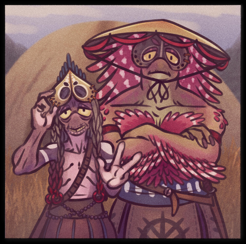 The nomadic Mudellan meetle rangers were loosely organized, queenless groups that followed independent spiritual guides, who in turn followed the wisdom of their herd. As the rangers had no settled queens, Mudokons were not born into the role, but may choose or be chosen by spiritual guidance to join them. Ranger bands served as travelling augurs and mystics, separate from an individual village’s medicinemud while commanding the same level of respect. As rangers travelled throughout the Mudella territories, they were often called on to deliver messages, provide emergency aid, and serve as neutral mediators when solving disputes.